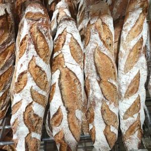 Cuisson du pain au feu de bois. Viennoiseries, pâtisseries, glaces et chocolats fabriqués sur place et "maison" Boulanger de France.